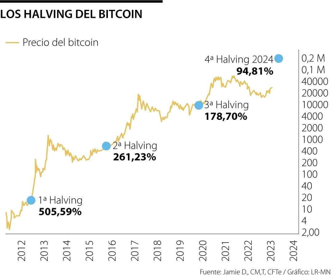 En lo que respecta al halving del Bitcoin que se producirá en el mes de abril, las interpretaciones se dividen entre quienes consideran que la reducción de la oferta impulsará los precios en medio de un escenario de alta demanda, dejando resultados muy similares a los ocurridos con los anteriores halvings, mientras los escépticos sostienen que esa reducción de la oferta no será significativa y que el aumento del precio ya se produjo en el 2023 aprovechando el sentimiento de mercado positivo antes del halving.