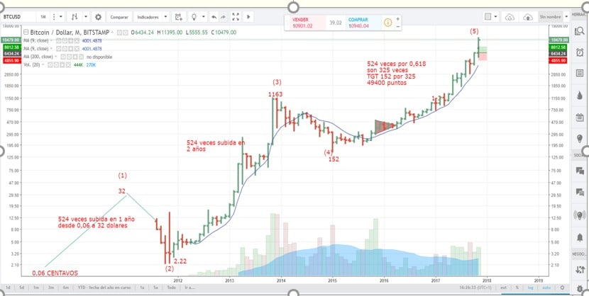 19.783,06 dólares marcó la cotización el 17 de diciembre de 2017 para alcanzar un nuevo máximo histórico. Ya el 12 de junio había dado fuertes indicios de un nuevo impulso de grandes proporciones al tocar los 3.000 dólares, lo que luego de algunas fluctuaciones de bajo relieve confirmó, al trepar hasta los 7 mil dólares el 2 de noviembre y los 17.900 el 15 de diciembre, hasta culminar el año en el valor histórico ya señalado.